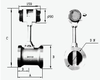 將渦街測量頭插入管道特定位置,通過測量該位置的局部流量,根據管道截面流速分布關系,計算出管道內平均流速值。它由轉換器、插入桿組件、球閥(根據需求配 )、安裝短管(ф100)、渦街測量頭等組成。