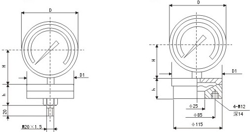 :0~40,-40~0,±20KPa規(guī)格承壓部尺寸D1;為φ85