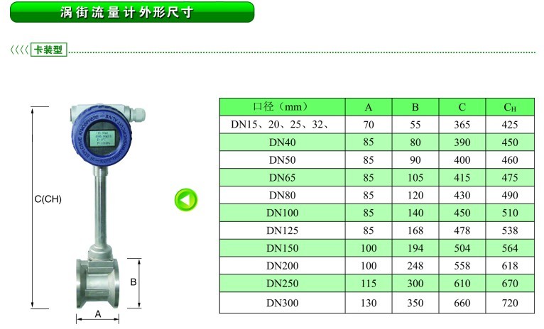 傳感器輸出的電壓脈沖信號送到連于一體的就地顯示儀。就地顯示儀采用zui新微功耗CPU,測量渦街傳感器輸出的頻率信號,根據設定的密度,渦街流量系數進行流量運算,現場液晶顯示瞬時流量和累計流量。