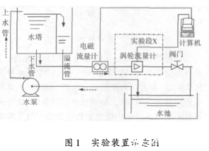 實驗是在天津大學天津市過程參數檢測與控制重點實驗室的水流量標準裝置上完成的,實驗管徑為100mm,圖1為實驗裝置示意圖。
